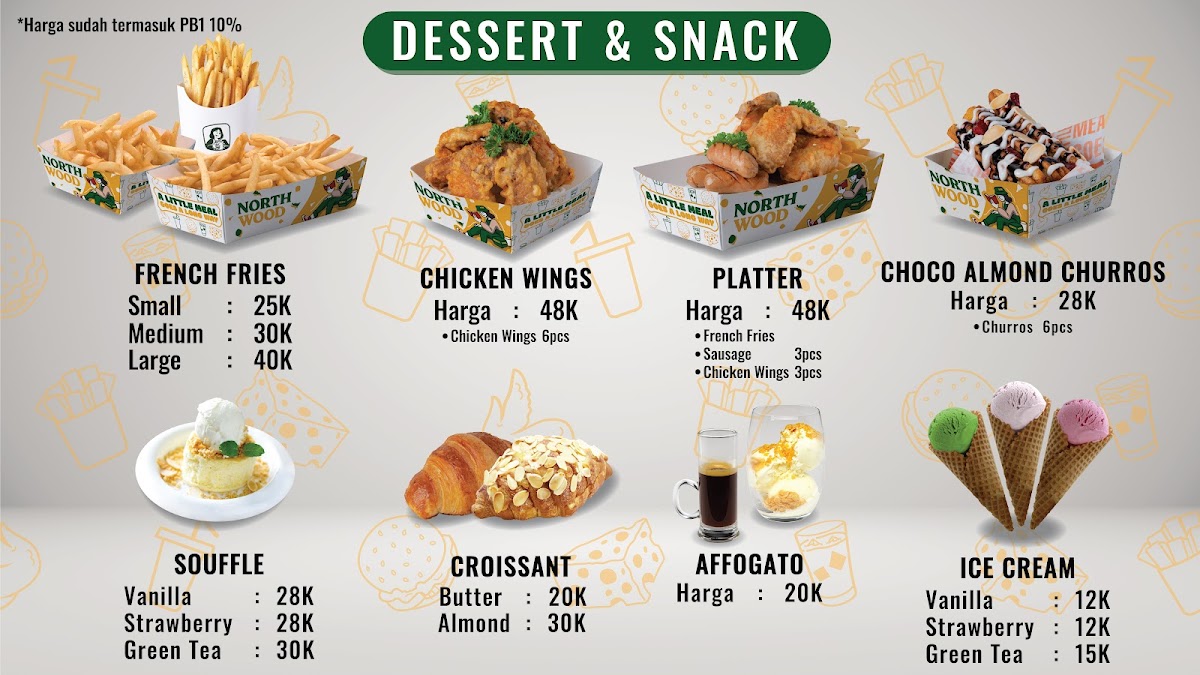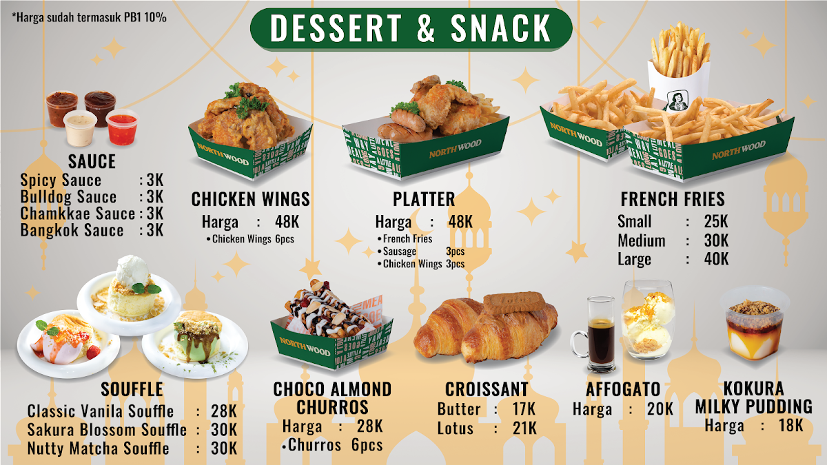 Overall, Northwood Setiabudi’s menu offers a delightful mix of options, from hearty meals and refreshing drinks to indulgent desserts and snacks. Whether you're dining solo or with friends, there’s something for everyone, making it a perfect spot to enjoy great food and drinks in Bandung.